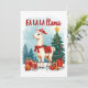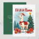 Tarjeta de Navidades Fa La Llama con una Llama mona vestida con un traje de Navidad y árbol de Navidad. Personaliza tu texto de bienvenida.