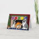 ¡Adorables Tarjetas de Navidades Perros Lover! Una variedad de perros de caricatura, incluyendo una mezcla dálmata, corgi y perro pastor, se sientan frente a un fuego abrasador, con medias para cada perro colgando del manto. En el interior se lee "¡Felices fiestas de nuestra familia a la tuya!" Personalizar fácilmente el texto con nuestra herramienta de personalización. Perfecto para la temporada de Navidad.