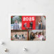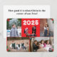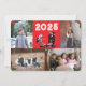 Delante del diseño hay espacio para cuatro fotos con un fondo rojo brillante. La imagen central superior es de un juego de Natividad de Navidades. El año se muestra en la parte superior en una letra en negrita y en blanco. El diseño se recorta con la imagen de un hueco en las esquinas. Revertir muestra el texto mostrado en dos formatos con un fondo blanco. Opción para reemplazar el encabezamiento o la licencia tal como está. Todo el texto es personalizable. También disponible con fondo verde cazador.