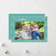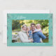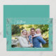 "¡Celebra la temporada con un toque personalizado! Esta tarjeta de vacaciones personalizado muestra la preciada foto de tu familia, el nombre de tu familia y el año. Es perfecto para extender la alegría de las vacaciones a los seres queridos cercanos y lejanos. Imprimida en papel de calidad superior, esta tarjeta es a la vez elegante y duradera, lo que asegura que se convierta en un regalo para los próximos años. Diseño moderno con fondo verde menta y follaje Navidad festivo.