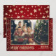 Celebra la temporada de fiestas con esta hermosa tarjeta de Navidades de fotos que muestra la imagen de tu familia enmarcada por una frontera roja festiva con estrellas doradas. Este elegante diseño capta la calidez y la alegría de los Navidades, lo que lo convierte en un maravilloso placer para sus seres queridos. Personalice fácilmente con su nombre familiar para que sea verdaderamente único. Perfecto para compartir la alegría de las vacaciones y enviar cálidos deseos a amigos, parientes y colegas durante esta época mágica del año.