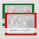 Tarjetas de Navidades fotográficos de doble cara con dos imágenes. Colores verdes y rojos con lindos bordes de vieiras. Haz tus propias tarjetas navideñas de 2 caras con hermosas fotos de tu familia y tus hijos. Incluye un overlay transparente para su bienvenida personalizada de temporada y los deseos de Feliz Navidad. Tipografía elegante. Una forma de borde de corte personalizado es opcional. Cambie la cantidad para obtener el precio más barato por tarjeta de felicitación.