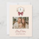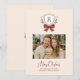 Envíe elegantes saludos navideños este año con tarjetas de fotos navideñas preppy y personalizadas escudo en monograma. El diseño presenta un sencillo escudo dibujado a mano con estribillos verdes y un rústico arco a rayas. "Feliz Navidad" está escrito en un moderno guión escrito a mano para darle un toque moderno. Personalizar fácilmente el frente con la foto favorita de tu familia, el primer monograma de tu familia y tus nombres. Todos los colores son editables para que puedas complementar tu foto subida o tu estilo personal. © Kimbellished, LLC