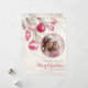 El rosa claro con los tonos rojos y malvas resalta el contraste con el blanco para mostrar nuestros encantadores adornos colgados de las ramas de un bonito árbol de Navidad en esta hermosa acuarela vintage. La tarjeta de vacaciones plana muestra la foto seleccionada en la parte delantera. También está el sentimiento, "Te deseamos una feliz Navidad", que es editable. Además, asegúrese de cambiar el nombre de familia y el año de ejemplo a sus propias opciones. Al revés, un ejemplo de párrafo de saludos y firmas. Edite esto en el tuyo.