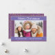 Púrpura con tarjeta de Navidades fotográficos personalizados con copos de nieve dorados.