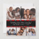 Un falso copo de nieve purpurina decora esta carta con un patrón de manteca negra y roja en el fondo y las palabras alegres navidades. Personalízalo con tu propio saludo y agrega 5 de tus fotos favoritas a la parte posterior de la tarjeta. Diseñado para ti por Blackberry Boulevard.