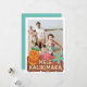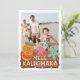 Diga Feliz Navidad en hawaiano con esta tarjeta de vacaciones de Mele Kalikimaka. Cuenta con flores tropicales de bonito y tiki sobre un cartel de madera. Añade tu foto especial de la familia. Este diseño tiene una gran vibra hawaiana en la playa. Incluye un lugar para tu mensaje de vacaciones y el nombre de la familia en la parte posterior.