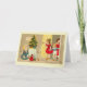 Diseñado por Susan Epps Oliver. Navidades alemanes vintage se asoman a una habitación donde un árbol de Navidad está rodeado de regalos y juguetes, incluido un mecedor. El mensaje es "Herzlichen Weihnachtsgruss".