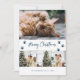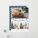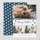 Foto moderna de la tarjeta de Navidades Meowy azul con tres fotos con un saludo de vacaciones con letras a mano en la parte delantera y un fondo azul con caída de la nieve y huellas de pata en la parte trasera. Personaliza fácilmente esta tarjeta azul de vacaciones con fotos, nombre de familia y año. Esta linda tarjeta de Navidades se puede convertir en cualquier color usando la herramienta de diseño.