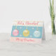 Desee a sus amigos y familia una Feliz Navidad con esta tarjeta de felicitación bilingüe española con tres adornos navideños. El diseño presenta tres coloridos adornos navideños y el texto dice "Feliz Navidad", en castellano, y "Feliz Navidad" en inglés. Perfecto para invitaciones de Navidades y fiestas de vacaciones! Una linda tarjeta bilingüe de navidad decorada adornos de Navidad.