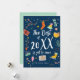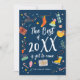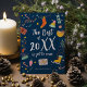 Feliz tarjeta de Navidad con estilo nórdico, elementos divertidos y coloridos.