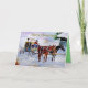 Tarjeta de Navidades occidentales. Esta tarjeta de Navidades tiene un motivo occidental -un cuadro de dos caballos tirando de un entrenador de escenario por encima de un granero cubierto de nieve. Una gran idea de regalo.