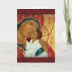 Tarjeta de saludo de Navidades ortodoxos rusos con un ícono de la Madre de Dios en un fondo dorado con ornamentos dentro de la tarjeta. Desafortunadamente, en este sitio web no es posible usar imágenes de tamaño completo en la parte posterior de las tarjetas.