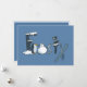 Tarjeta de vacaciones de arte de palabras escarpadas con un muñeco de nieve, copos de nieve, pingüino, esquíes y un sombrero superior. Inside dice "Lamentamos informarles que debido al calentamiento global, esta carta puede estar tan cerca como se llega a tener un muñeco de nieve en su jardín delantero esta temporada navideña". El arte al estilo personalizado le da un toque de alegría al mensaje de sus Navidades. El texto es editable.