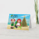 Tarjeta de Navidades Rag Doll en la playa con silla de playa y árbol de Navidad