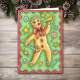 Esta divertida tarjeta de saludo de Navidades presenta una imagen vintage de un hombre de jengibre. Está soplando un cuerno de oro en una mano, y sostiene un bastón de caramelo a rayas en la otra. A su alrededor hay imágenes de Navidades, incluyendo dulces, estrellas y un corazón. Todo está colocado sobre un fondo verde y rojo, enmarcado en oro. El interior de la tarjeta tiene mucho espacio para el mensaje de su personalizado. Para ver cientos de imágenes de Navidades antiguos y contemporáneos en una variedad de productos, visita la sección "Navidades" de nuestra tienda.
