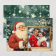 Esta tarjeta de Navidad incluye un Santa de estilo clásico vintage con una foto enmarcada en oro para insertar su atesorada foto familiar. La expresión alegre de Santa y el telón de fondo nevado crean un ambiente cálido y nostálgico de vacaciones. Encima del marco, la tarjeta dice "¡Feliz Navidad!" en un libreto de escritura blanca, y el nombre de tu familia que permite que esta tarjeta sea personalizada. El diseño general combina el encanto tradicional de las vacaciones con un toque personal, evocando sentimientos de calidez y unión.