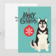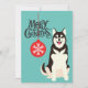 Festiva Tarjeta de Navidades Siberian Husky Retro Aqua