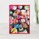 Una fotografía de antiguos adornos vintage, magníficos, coloridos, de Navidad es el tema de mi tarjeta de Navidades "Deseándote Recuerdos felices del pasado y alegría en el presente de estos Navidades".