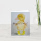 Adorable tarjeta de Pascua con una pequeña chica con botas de lluvia amarillas