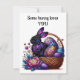 Me encantan estos colores brillantes de color morado, azul, negro y oro y los he creado para que parezcan un efecto de vidrio teñido en un conejo con huevos de Pascua de colores brillantes, sentado en una canasta de caña. El texto "un conejito te ama" que también puede ser personalizado.