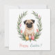 Festiva Tarjeta de Pascua con una foto de un pug