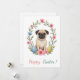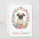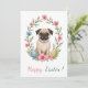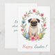 Difunde alegría en estas brillantes vacaciones con nuestra tarjeta de Pascua con un lindo pug rodeado por un delicado arreglo de Pascua en tonos pastel. Esta tarjeta es perfecta para los saludos de Pascua, añadiendo calidez y calidez a sus deseos. Los colores claros pero suaves crean una atmósfera de alegría y amor, y el encantador pug sin duda traerá una sonrisa a la cara del destinatario. ¡Escriba sus sentidos saludos dentro y haga que esta festividad sea aún más especial! Perfecto para amigos y familia, esta tarjeta será una maravillosa incorporación a sus saludos de Pascua.