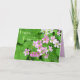 Flores y hojas de shamrock rosa delgadas adornan esta florida tarjeta de Pascua. Foto de mi propio shamrock.