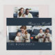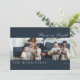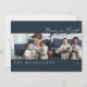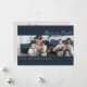 Una tarjeta de vacaciones moderna azul medianoche cuenta con 2 fotos en la parte delantera, 1 foto en la parte trasera de la tarjeta con un corazón rojo decorativo en el medio. Escritura "paz en la tierra". Campo de texto para personalizar su mensaje.