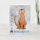 Encantarán a los amantes del gato con esta tarjeta caprichosa de la foto de "Hanukkat" de la diversión, ofreciendo un dibujo de un gato de tabby curioso marrón anaranjado que lleva un kippah, con los dreidels rojos y azules y el texto de "Jánuca feliz" azul. ¡Personalice con su nombre o mensaje como tarjeta de Hannukah/de Chanukah durante el festival de luces judío!
