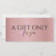 Presentamos nuestra versátil tarjeta de regalo, un complemento perfecto para fortalecer el posicionamiento de la marca de su negocio de extensión de pestañas, servicios cosméticos, maquillador, peluquero y spa de uñas. Personalizar esta tarjeta con un toque de elegancia, incluyendo su logotipo y detalles de negocios. Ya sea para una ocasión especial o para un regalo de mimo, esta tarjeta de regalo de certificado ofrece una experiencia encantadora para los amantes de la belleza, reforzando la identidad de marca de su empresa y mejorando su presencia en el mercado.