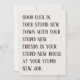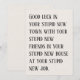 Graciosa tarjeta de salida - ¡Buena suerte en tu estúpida ciudad nueva! Despide a tu amigo o a tu ser querido con una carcajada de "Buena Suerte en tu Estúpido Nuevo Pueblo". Esta tarjeta graciosa y ligeramente inapropiada es la mezcla perfecta de sarcasmo y afecto, ideal para alguien que se embarca en una nueva aventura. Es la manera perfecta de reconocer su movimiento mientras se burlan del momento agridulce de decir adiós. Esto no es sólo una tarjeta; es un recuerdo memorable que captura la dinámica única de tu amistad. ¡Imaginen la risa mientras abren esta tarjeta y leen el mensaje descarado! Es un rompehielos garantizado y una manera divertida de aligerar el ánimo durante una transición a veces emocional. Ya sea que se muden a través del país o al otro lado de la ciudad, esta tarjeta les hará saber que los extrañarás mientras celebran su nuevo capítulo. Así que, si buscas una carta que se vaya un poco descortés, un poco sarcástico, y un poco divertida, esta es la elección perfecta. Seguramente dejará una impresión duradera y traerá una sonrisa a su cara cuando comiencen su emocionante nuevo viaje.