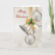 Una elegante y elegante tarjeta de Navidades con campanas de Navidades y adornos en tonos gris plateado y marfil y berry santa. Personalízalo con tu texto.