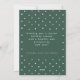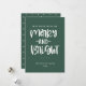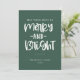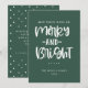 Festividad de la tipografía de Navidades merry y blancos brillantes, tarjeta de vacaciones verde. La parte posterior de la tarjeta se complementa con el marco de puntos de doodle blanco sobre el fondo de color verde coincidente. Espacios de texto de plantilla para mensajes y nombres.