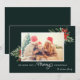 Envía tus saludos de vacaciones con estilo este año con esta elegante y moderna tarjeta de una sola foto. Cuenta con follaje de invierno en acuarela que incluye ramas de abeto, acebo y poinsettia sobre un fondo verde oscuro. Incluye parte trasera para agregar fotos adicionales. Personaliza con tus fotos y nombre o mensaje personal. Visita nuestra tienda Zazzle para ver más artículos coincidentes en esta colección.