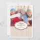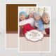 Un esquema de colores simple pero elegante de rojo, beige y marrón chocolate. El fondo beige texturizado está acentuado con cintas falsas rojas y marrones y presenta una gran foto de su familia con texto personalizable en el medallón central. ¡Divertido, festivo y moderno!