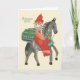 Tarjeta de saludo de Navidades polacos vintage/retro. ¡Papá Noel en un burro! ¡Wesołych Świąt! Feliz Navidad!