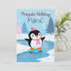 Se propaga la alegría de las vacaciones con esta adorable carta de patinaje sobre pingüino, con una escena de invierno impresionante con copos de nieve y árboles helados. Perfecto para enviar cálidos deseos a la familia y amigos, esta carta festiva aporta alegría divertida a la temporada de vacaciones.