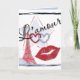 San Valentín vía París. Envía tu amor con un diseño de inspiración francesa roja y azul que incluye doble corazón, la torre Eiffel y un beso con pintalabios.