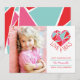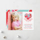 Un corazón formado por varios triángulos de color rosa, rojo y agua clara, con las palabras "Amor y abrazos" debajo. La parte posterior de la tarjeta presenta el mismo diseño geométrico triangular. ¡Fácil de personalizar! Reemplace la imagen de plantilla antes de comprarla.