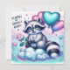 Festiva Tarjeta de San Valentín de Mapache con Ramo de Glo