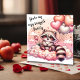 Festiva Tarjeta de San Valentín de Mapache con Tulipanes y