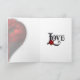 Tarjeta de San Valentín gótica con corazón sanguíneo y rosa de sangre en damasco rojo. El interior de esta tarjeta también está decorado.