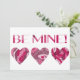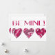 Tarjeta de San Valentín adorable con corazones pintados de rojo, rosa y burdeos y las palabras "Be Mine"
