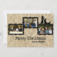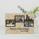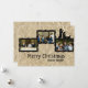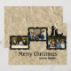 Esta tarjeta de Navidades le permite cargar tres fotos horizontales. Fondo de papel arrugado, marcos negros, silueta de pastores que vienen a ver al niño Jesús. Introduzca su mensaje de vacaciones en la parte de atrás.