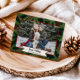 Celebre la temporada con esta tarjeta de una foto con marco rústico pero elegante para las fiestas, enmarcada con ramitas de pino y piñas pintadas a mano en acuarela. Un fondo verde oscuro profundo combinado con un borde de color cranberry rico crea un ambiente cálido y festivo para su foto familiar favorita. Una cinta de crema marfil atraviesa la parte inferior del diseño con texto personalizable para su saludo navideño y un espacio debajo destaca el nombre de su familia. Combinando encanto botánico con estilo navideño atemporal, esta tarjeta es perfecta para enviar buenos deseos junto con una foto a sus seres queridos. Parte de la Colección Rustic Winter Watercolor Pine, combina perfectamente con etiquetas de dirección de devolución, stickers y papelería a juego para crear un look coherente para la temporada. Perfecto para familias, parejas y aquellos que aman la papelería navideña atemporal con vegetación en acuarela y elegancia rústica