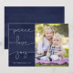 ¿Qué mejor manera de desear a tus amigos y familia una feliz temporada navideña que con esta encantadora tarjeta de fotos pintada de azul que incluye las palabras "paz, amor, alegría" en un moderno guión escrito a mano blanco? Personalizado con tu foto favorita, esta plantilla de tarjeta de Navidades 5x7 hace que sea muy fácil de crear, ordenar y enviar, ¡y te deja más tiempo para pasar con tus seres queridos! También disponible en verde y rojo!