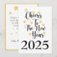 Envíe una buena ovación para el Año Nuevo cuando envíe por correo esta tarjeta de felicitación de Año Nuevo 2025 de estilo minimalista. Esta tarjeta de Año Nuevo presenta un fondo blanco clásico con estrellas doradas y texto de escritura alegre en el frente. Hacerlo único con un mensaje personalizado en la parte posterior y una firma preimpresa para su comodidad.