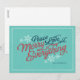 Esta tarjeta festiva se trata de celebrar la temporada y está diseñada exclusivamente para Zazzle. Fondo nevado azul Caspio con una fuente tipo cinta proporciona justo el lienzo adecuado para tu mensaje de temporada. Agrega un sello de temporada de Envelopments de nuestra extensa colección de franqueo para que combine perfectamente con tu saludo. Sobres, forros y cierres Pocketfold de Envelopments están disponibles como complemento (a la derecha) a través de zazzle.com.