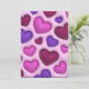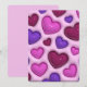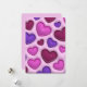Tarjeta de vacaciones con corazones 3D rojo brillante, rosa y púrpura